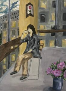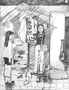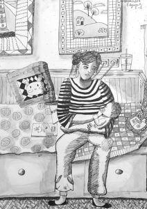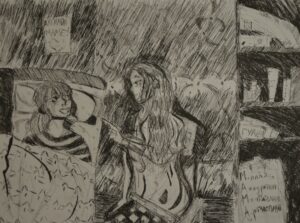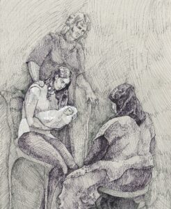 «Вечерняя беседа с мамой», бумага, тушь