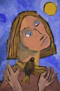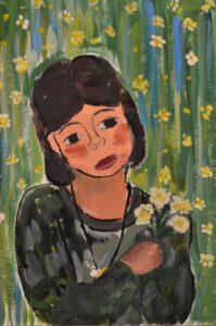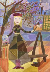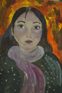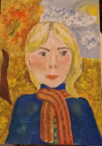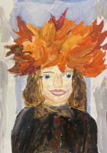 «Портрет мамы в венке из кленовых листьев». Бумага, гуашь