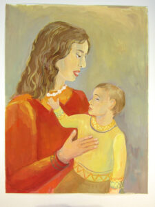 «Мама и Тимоша», бумага, гуашь