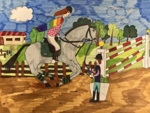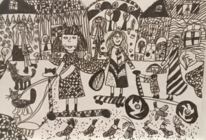 «Прогулка с мамой», цветные карандаши, линер