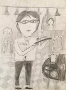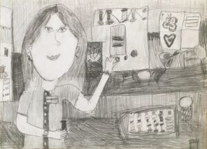 «Моя мама», цветные карандаши, линер