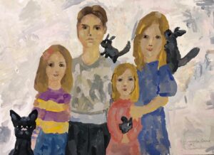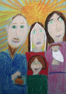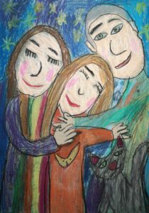 «Я, мама, папа и кошка», масляная пастель