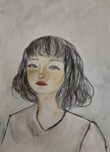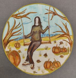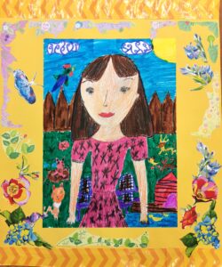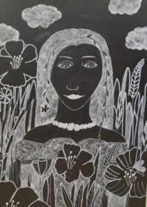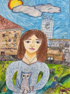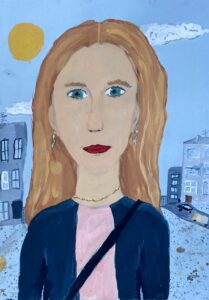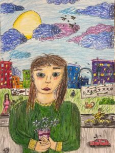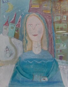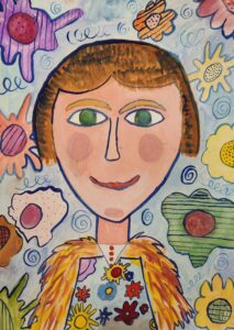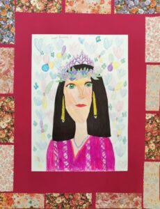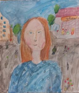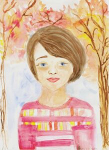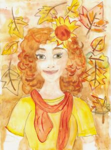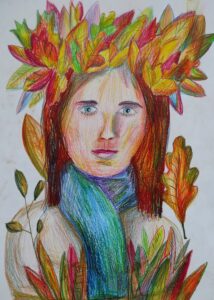 «Портрет мамы в Осеннем венке», бумага, цветные карандаши