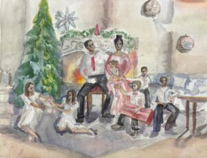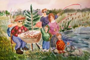 «Отдыхаем всей семьей», бумага, акварель