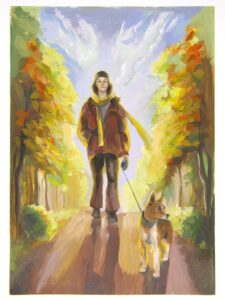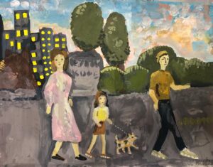 «Мама на прогулке», гуашь