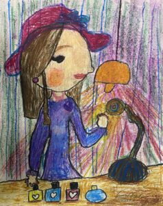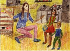 «Мама собирается в театр». Бумага, восковые мелки