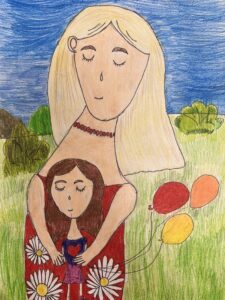 «Прогулка с любимой мамочкой», цветные карандаши, линер