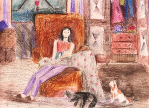 «Моя мама любит читать», цветные карандаши, линер