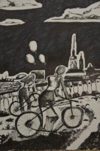 «Велопрогулка с мамой», бумага, тушь