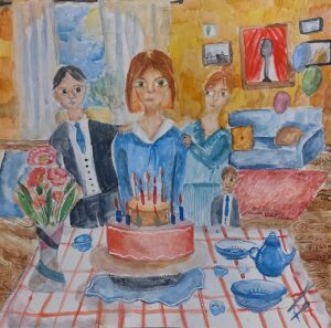 «Мамин день рождения», бумага, белила, акварель