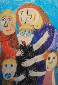 «Мы с папой очень любим маму», масляная пастель