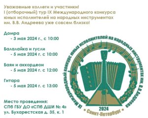 IX Международный конкурс юных исполнителей на народных инструментах имени В.В. Андреева состоится в 2024 году!
